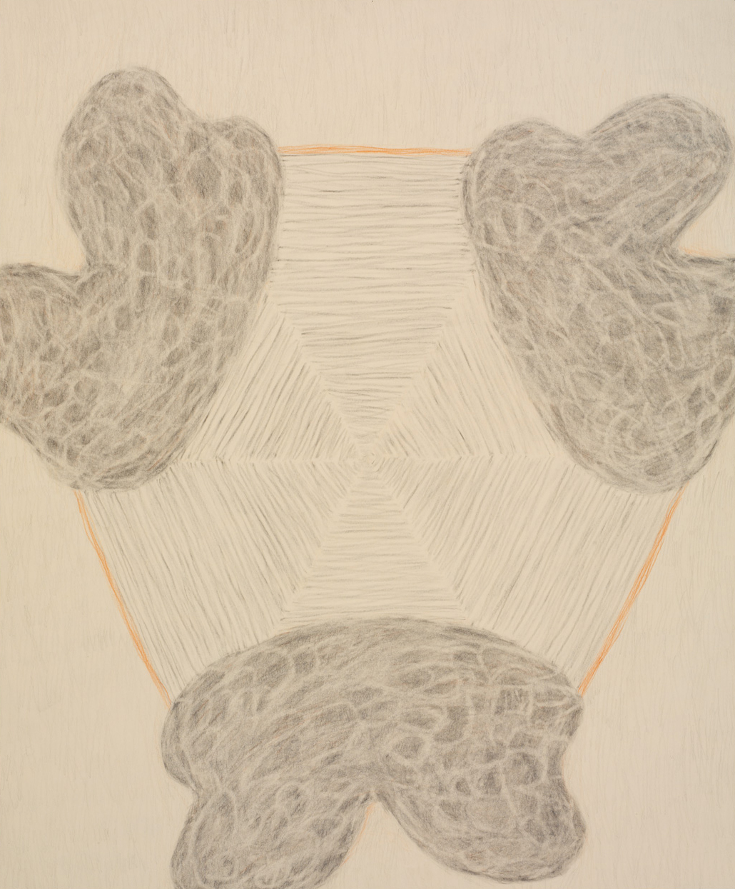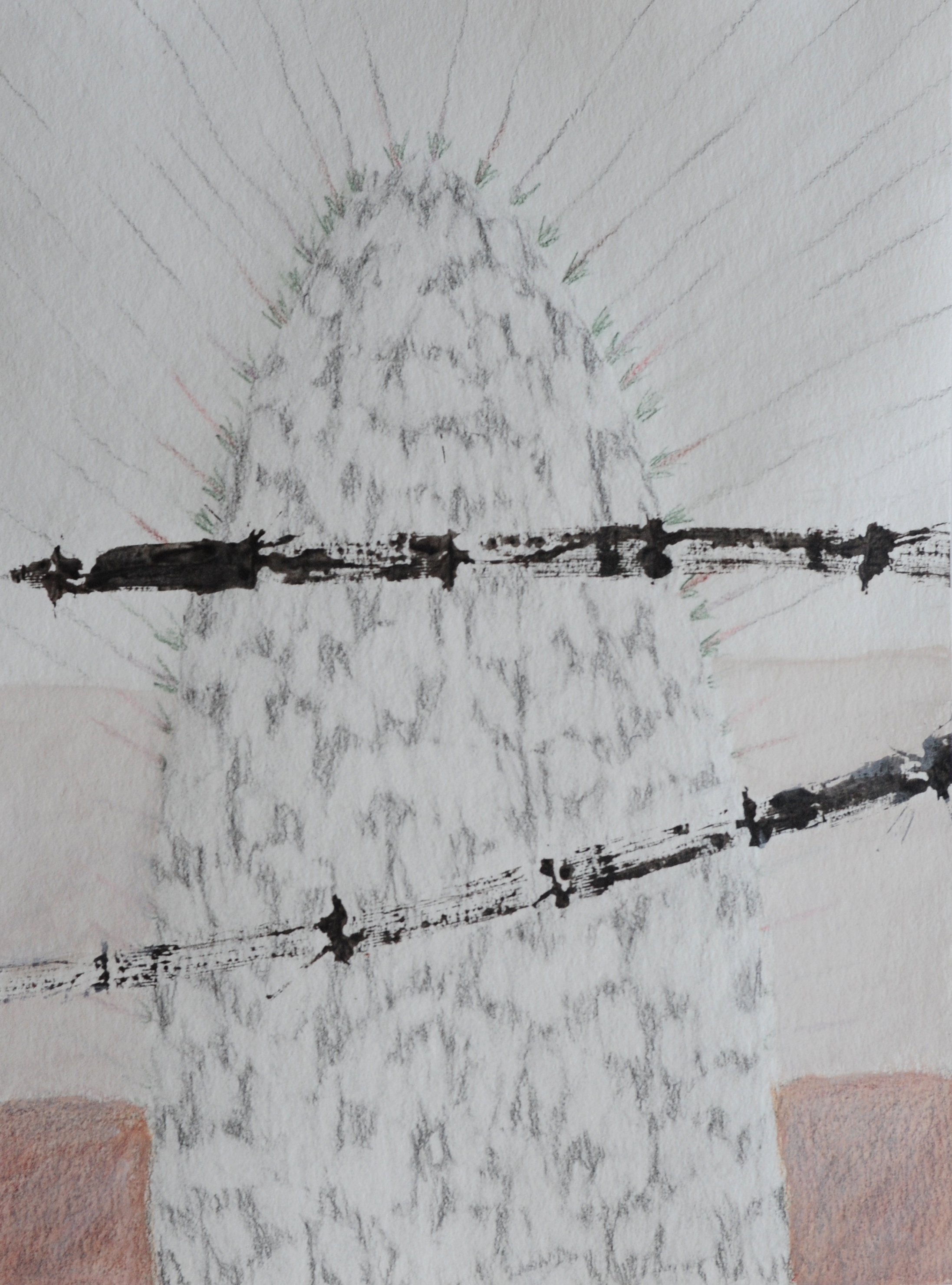 Bleistift, roter Farbstift auf Papier