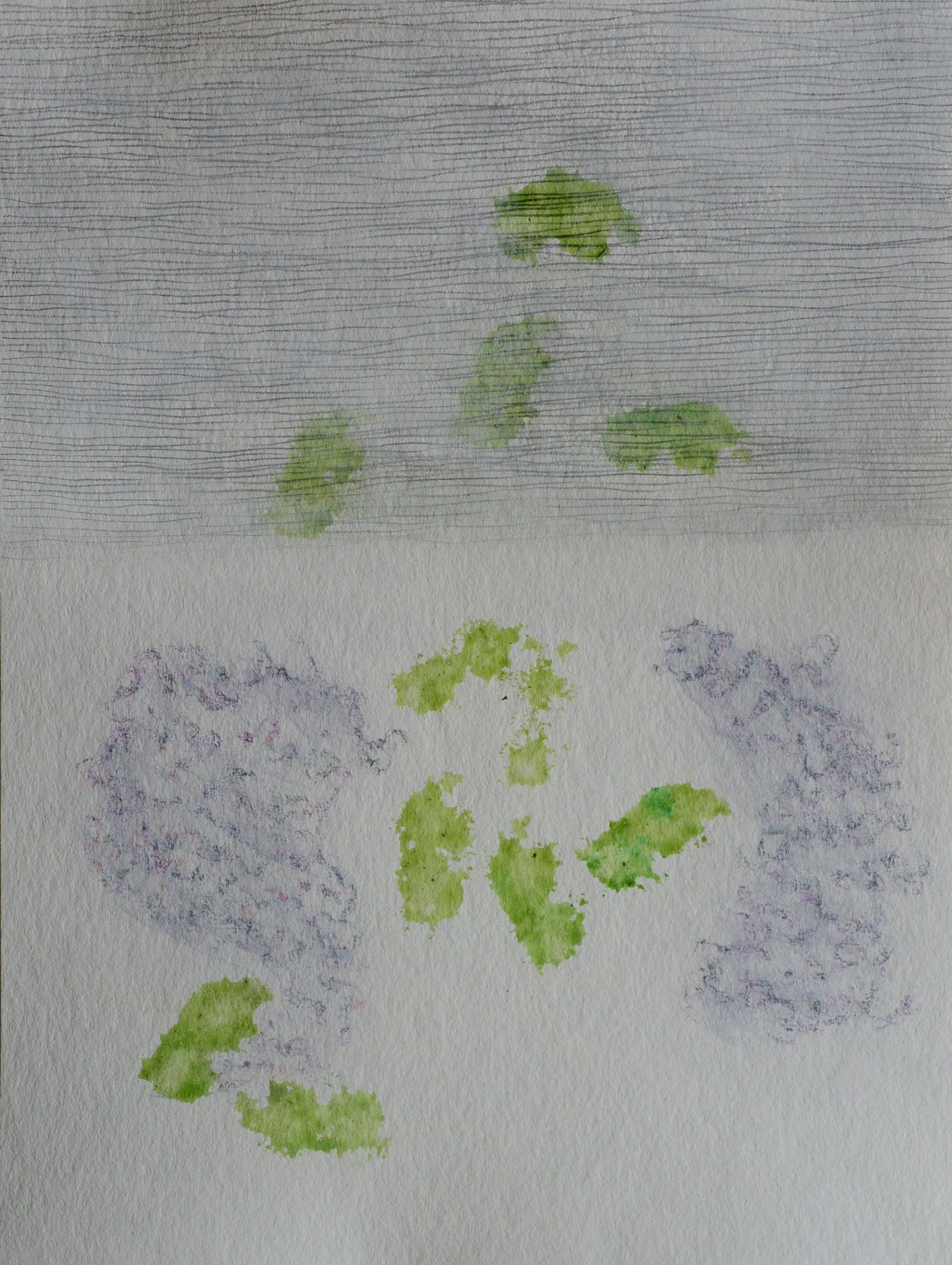 Pflanzendruck, Bleistift, Wasserfarbe